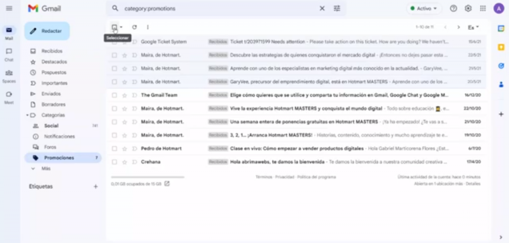 En Gmail, las promociones son mensajes que se muestran en la bandeja de entrada y se organizan automáticamente en la etiqueta «Promociones». A pesar de que no son correo no deseado, estos mensajes pueden consumir mucho espacio en tu cuenta. Ignorarlos puede resultar molesto y, si se acumulan, pueden llenar tu capacidad de almacenamiento. Sin embargo, Gmail proporciona una forma sencilla de eliminarlos todos. Si sigues los pasos que se detallan en este vídeo, podrás liberarte de todos los correos publicitarios no deseados.