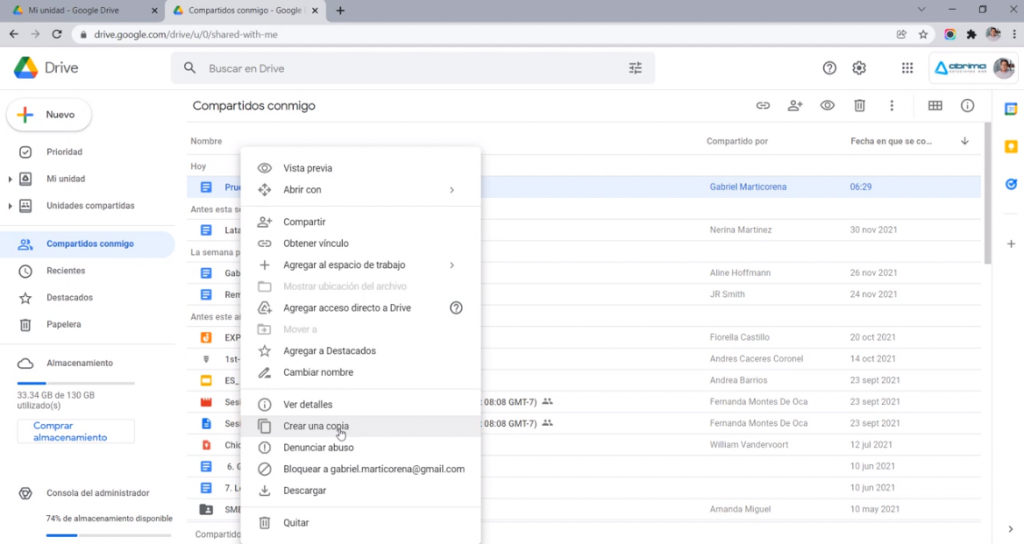 Cómo copiar archivos de Drive Personal a Drive Empresa o Institucion