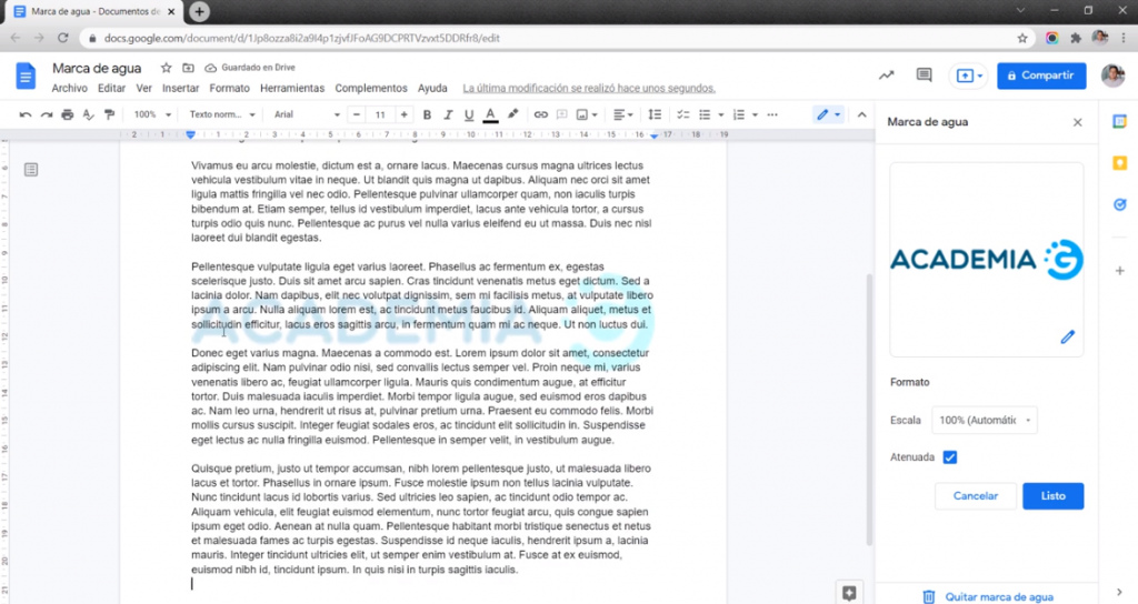 Antes teníamos que recurrir a artificios para insertar una marca de agua o watermark en Google Docs, ya que no existía dicha opción en Documentos de Google. Ahora ya esta disponible de manera oficial dicha opción y podemos insertarlo directamente.