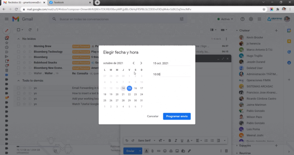 Podemos programar el envío de un mensaje de correo electrónico en Gmail y se envíe para el día y/o hora que deseemos.